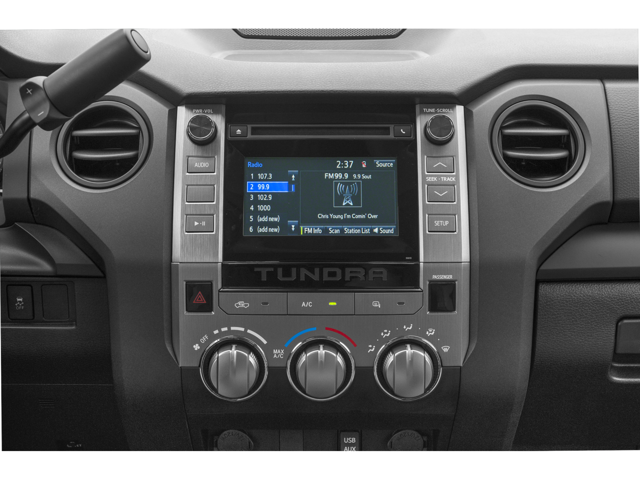 - Radio: Entune AM/FM/CD -inc: MP3/WMA playback capability, 6.1" touch-screen display, auxiliary audio jack, USB 2.0 port, iPod connectivity and control, Bluetooth hands-free phone capability, phone book access, voice recognition and music streaming